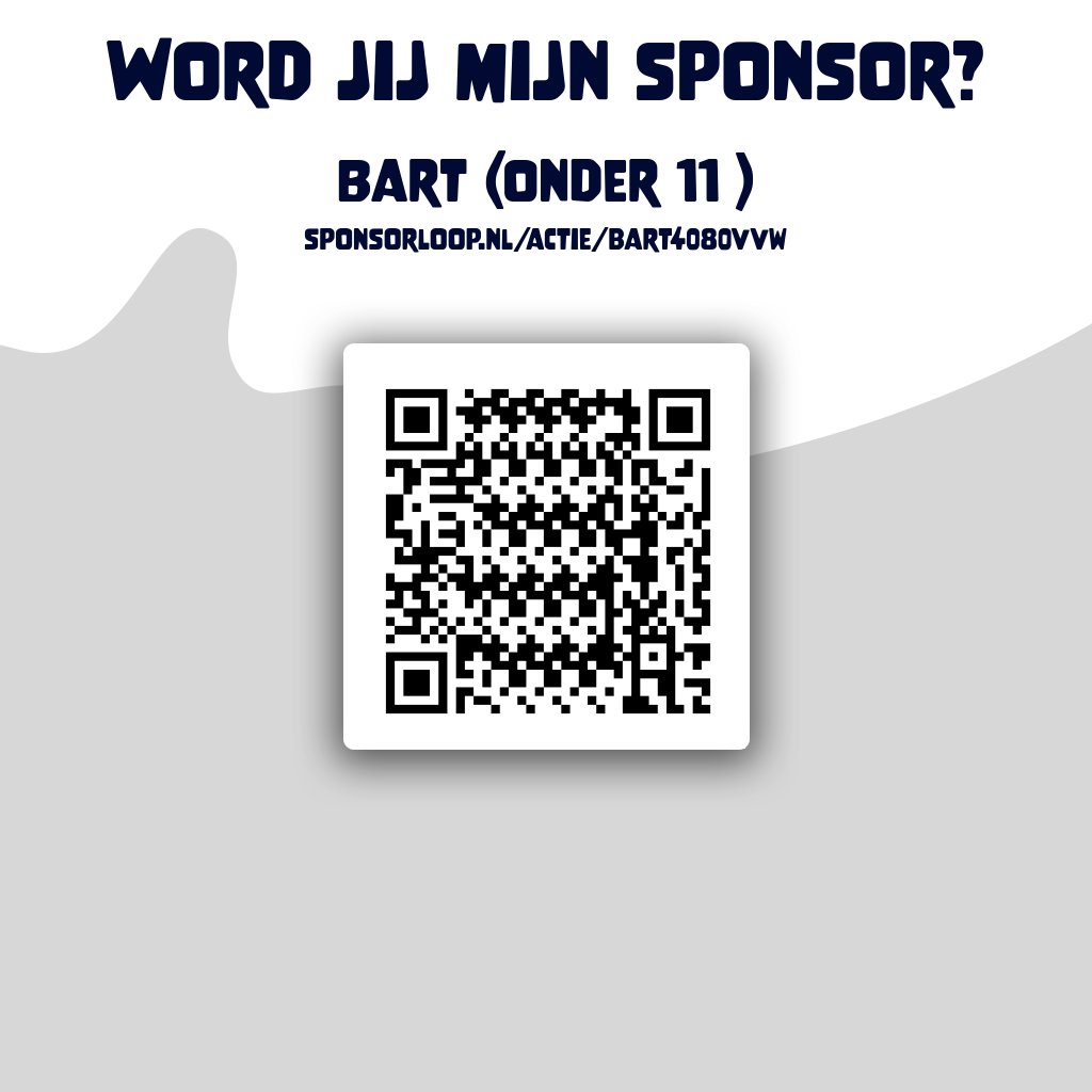 Ik doe mee aan de sponsorloop van vv Westerkwartier om geld in te zamelen voor de jeugd. We sparen voor nieuwe jeugddoelen én een leuke activiteit.